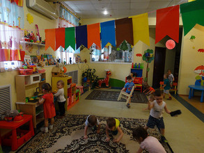 Детский сад расположен в специализированном помещении площадью 160 кв. м , в котором есть оборудованные спортивный зал, музыкальный зал, столовая, учебный класс и конечно групповые для яслей, младшей, средней и старшей групп.